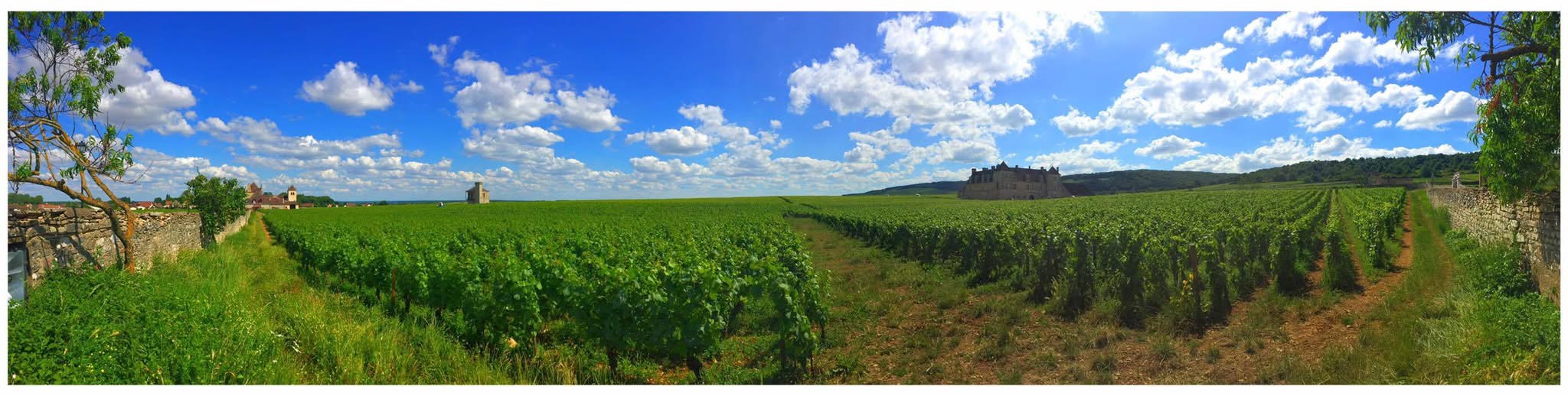 The Clos de Vougeot climat is located in the town (commune) of Vougeot and the vines are fully enclosed by a wall (clos in French), distinctively inside the enclosed wall sits the castle Château du Clos de Vougeot which was a functioning winery but now serves as the headquarters of The Climats de Bourgogne.